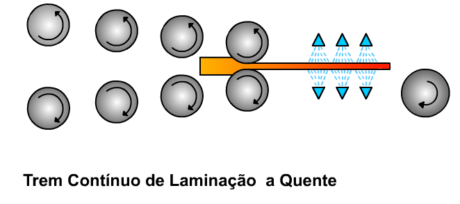 Na laminação a quente, o metal (incluindo o aço) é aquecido a uma temperatura elevada, próximo ou acima de seu ponto de recristalização, e então é passado através de uma série de rolos para reduzir sua espessura e alterar sua forma. Este processo é utilizado principalmente para a fabricação de produtos grossos – como placas, chapas, perfis estruturais e trilhos ferroviários – uma vez que é eficiente para moldar o metal, pois a temperatura elevada faz o material ficar em um estado mais maleável.