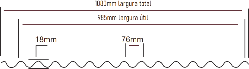 | Aço Galvalume | 0,65 mm | 1,73 kg/m² | 625x625; 1250x625 |