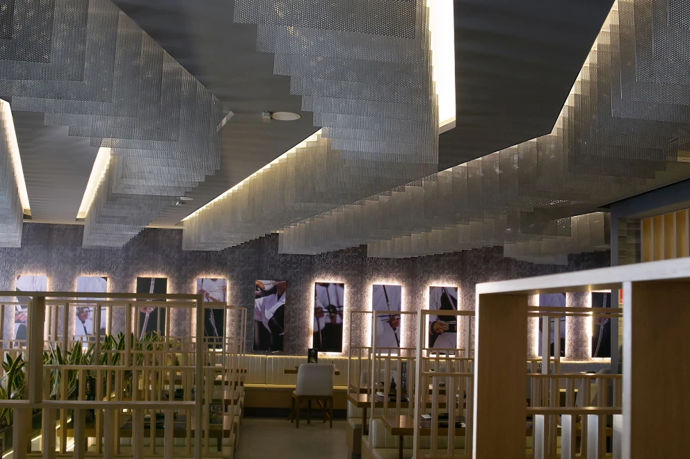 Para o restaurante Kyudo Sushi, foi desenvolvida uma fachada elegante e sofisticada utilizando produtos da Bepex. Optando pela linha Nala para criar um ambiente moderno e acolhedor, combinada com a linha Hafeet para trazer um toque de classe e durabilidade. O resultado é um design que reflete a essência do Kyudo Sushi, proporcionando uma experiência visualmente impressionante para seus clientes.